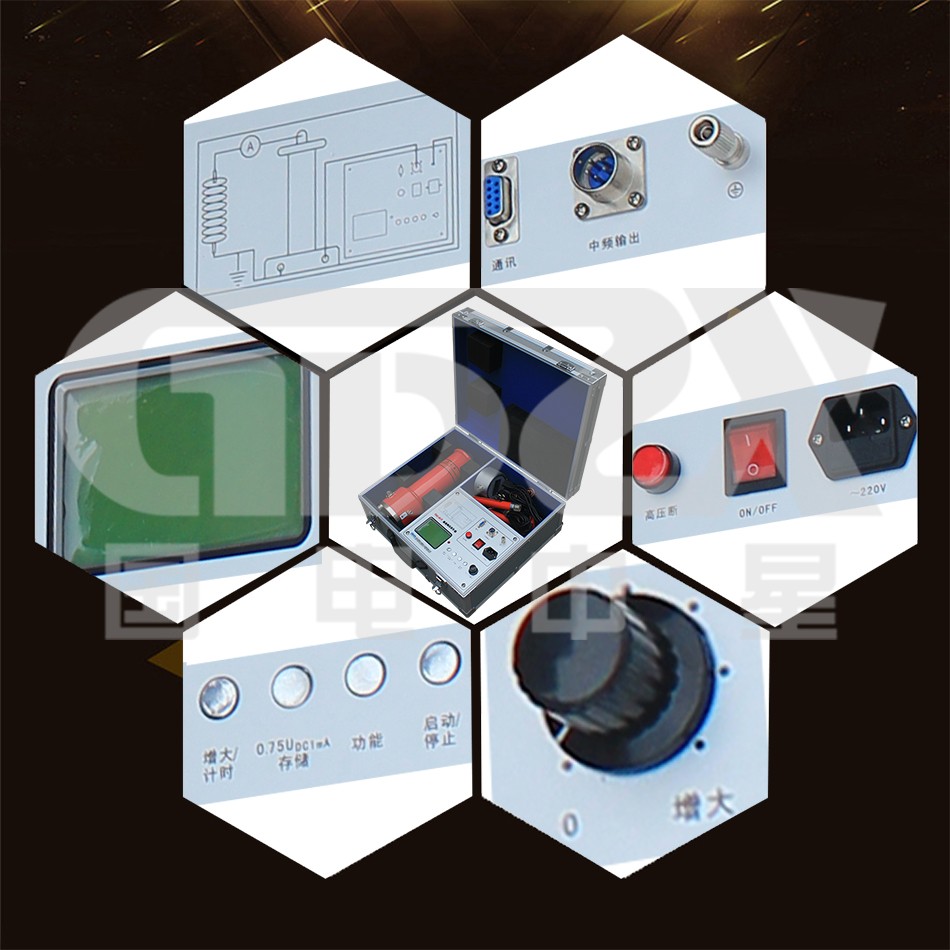 ZGC系列直流高壓發生器。應用AIPWM技術,對PWM技術的不準確線性度進行了調整,使儀器精度得到了大幅度提高。并采用AI技術屏幕設定過壓保護和過流保護取代了數字撥盤開關只能設定電壓值,不能設定電流值及電壓飄移的問題。0.75UDC1mA功能按鈕,方便氧化鋅避雷器試驗,精度≤1%。增加了任意電壓、電流下計時功能,及總時間T1和分段計時T2功能。儀器增加了萬年歷和時間功能。